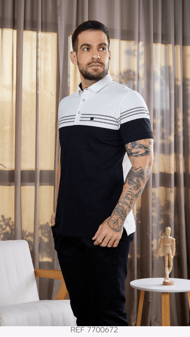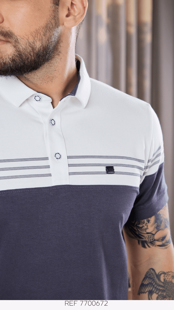 POLO RECORTE SILK LISTRAS NO PEITO - 7700672